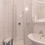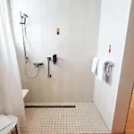 The rooms have private bathrooms with a separate toilet, a lowered sink, and a shower.